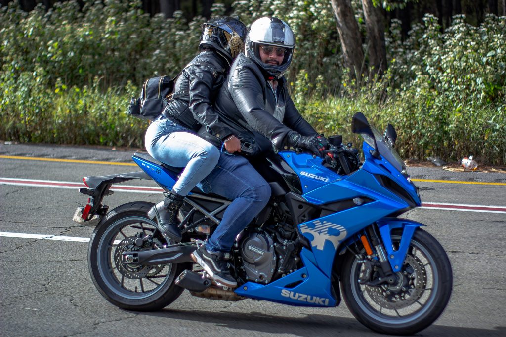 En el apartado de diseño, la GSX-8R adopta una estética claramente inspirada en la familia GSX-R, con carenado completo, líneas agresivas y una postura deportiva, pero con una ergonomía más accesible. Su posición de manejo ha sido cuidadosamente estudiada para ofrecer mayor confort en trayectos largos, sin perder el carácter deportivo que distingue a la marca.